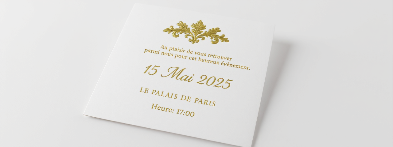 faire-part de mariage personnalisés sont imprimés avec des techniques modernes, assurant des couleurs vives et des détails raffinés. Vos invitations deviendront ainsi bien plus que de simples cartes : elles incarneront l’émotion et la magie de votre mariage.